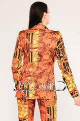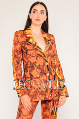 Women's Jacket: Baroque Print Fitted Double Breasted Evening Blazer