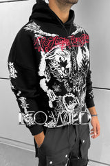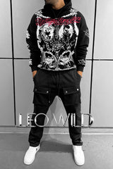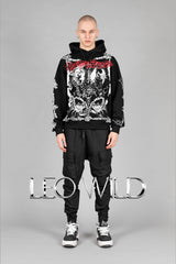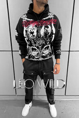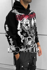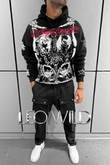 Black Graphic Hoodie for Men: Oversized Printed Men's Sweatshirt