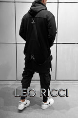 Black Long Zip Up Hooded Cardigan for Men
