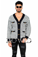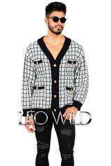 Black & White Oversized Stylish Men's Cardigan