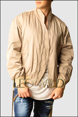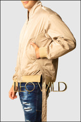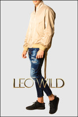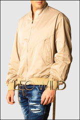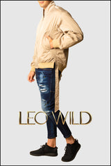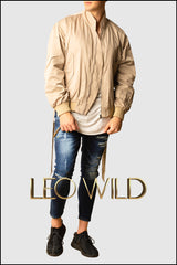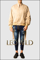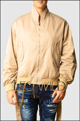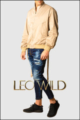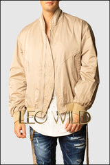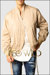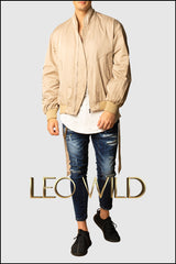 -This cool Designer Bomber Jacket in Beige closes with Center Front Zip