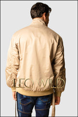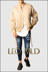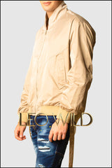 The ‘Top Gun’ Beige Men's Bomber Jacket by LEO WILD™ is a stylish and cool outerwear piece, featuring a modern fit, a wide stand collar and all over shiny satin effect fabric. From a military must to a forever fashion favorite, it’s essentially a year-round staple that’ll make your style infinitely cooler