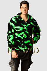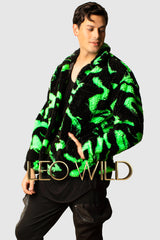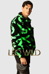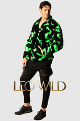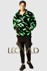 Opt for a casual wear classic with the Edgy Green Liquid Furry Shirt Jacket by LEO WILD™, endlessly versatile and designed for lasting comfort. The fleece stylish jacket boasts an easy button front fastening, two side pockets, and on-trend vibrant neon green liquid print. Pair yours with our modal tank top and coordinating black distressed designer jeans for a cool, casual look that will never go out of style.