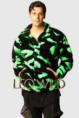 Shirt Jacket for Men : Green & Black Furry Going Out Jacket for Men