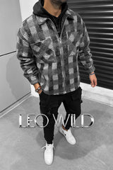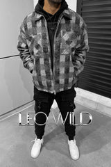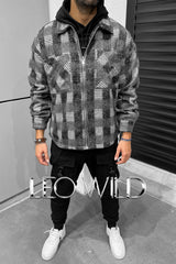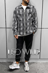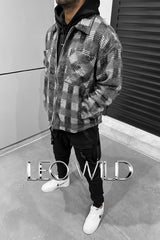 Gray Warm Zip Jacket for Men: Men's Winter Flannel Shirt Jacket