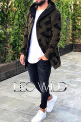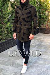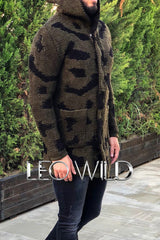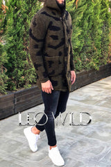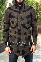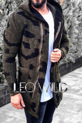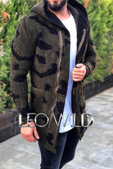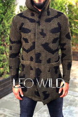 Knitted Cardigan for Men: Army Green Slim Fit Zip Up Jacket