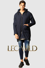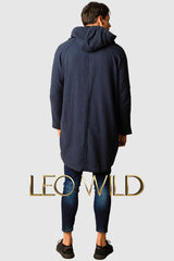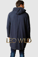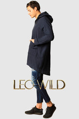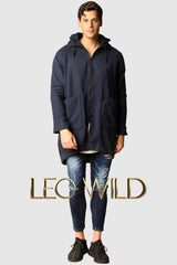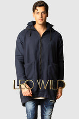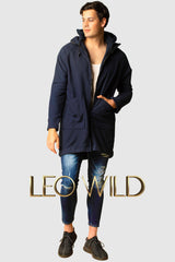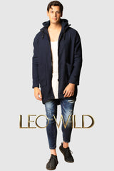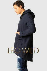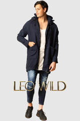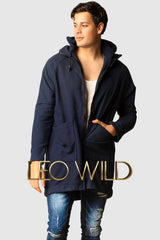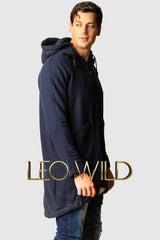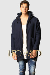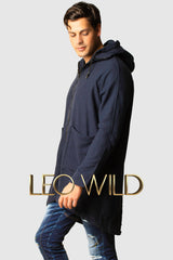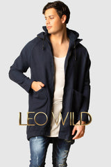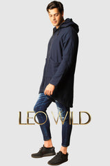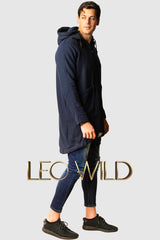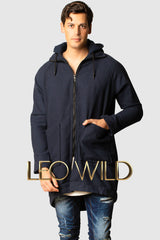 Get a street-ready look and step out in a bold style with this Come A Long Way Navy Blue Men's Long Zip Up Cardigan by LEO WILD™. This full zip navy blue hooded coat is built from warm premium cotton fabric for comfy, laid back wear. With a woven texture, a full zip fastening for easy access, and a drawstring hood for custom coverage on the streets, this super cool streetwear long hooded cardigan in navy blue is ideal for teaming with joggers for an off-duty look.