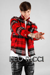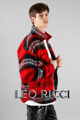 Red Flannel Winter Jacket for Men: Zip Up Warm Oversized Men's Shirt