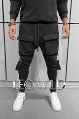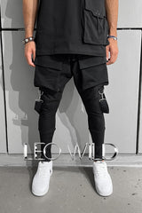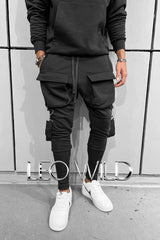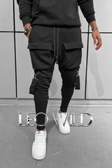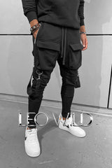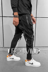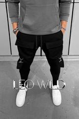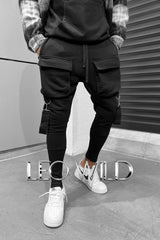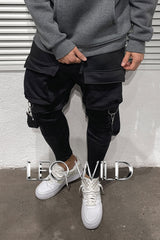 Men's Streetwear Joggers: Black Cargo Pants with Zipped Pockets for Men