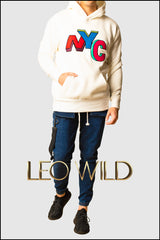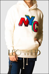 Men's NYC Hoodie: White Oversized Pullover for Men