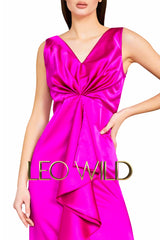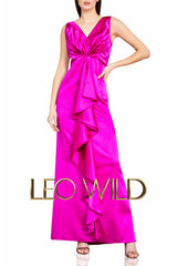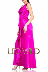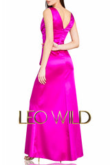 Long Cocktail Dress for Wedding: Pink Satin Formal Evening Gown