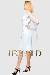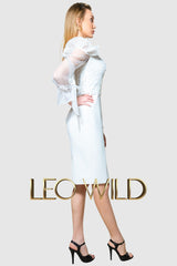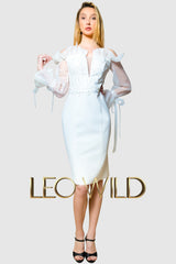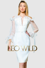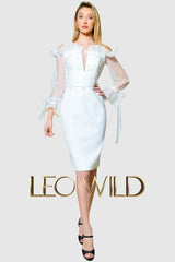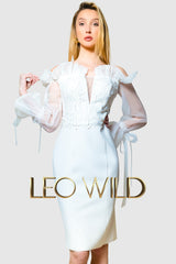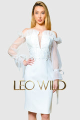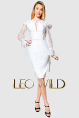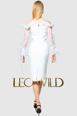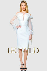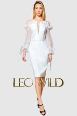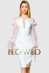 Update your white dress collection with the My Dream Proposal White Midi Cocktail Dress by LEO WILD™. This stunning midi bridal dress features a gorgeous off-shoulder neckline with ruffle details with sheer sleeves, a midi length. This beautiful white midi cocktail dress is cut from a luxurious Italian textured lace. This stunning creation will surely add femininity and class to your big day. Pair it with simple nude or clear heels for a glorious outfit outfit.