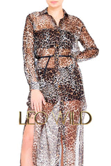 Sexy Shirt Dress: Sheer Leopard Print Maxi Shirt Dress