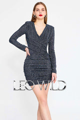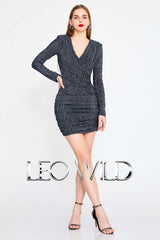 Silver Sexy Mini Cocktail Dress with Long Sleeve for Christmas & New Years Party