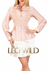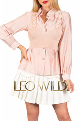 Update your everyday rotation of casual & elevated pieces with this contemporary Never Better Than My Pearl Bra Shirt Blouse in Blush Pink by LEO WILD™. With a long sleeves white shirt and stylish matching knitted bra with gorgeous pearl embellishments, this long sleeve pearl bra shirt blouse is perfect for dressing up for an evening event this season.
