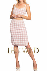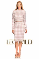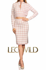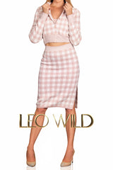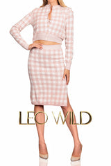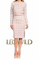 Pure elegance with a sexy twist is what can define the Total Confidence Designer Three Piece Sweater Set in Pink & White by LEO WILD™. The classy checkered pattern in Pink & White mixed with the bold style lines will have you turning heads everywhere you go. You can rock this striking outfit at work or to any of your special occasion and you will still be the best dressed!