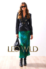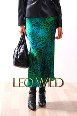 The rich and gorgeous leopard print in green has a highly recognizable premium fashion sense. The bias cut design shows a graceful silhouette. The A-line skirt goes slightly over the ankle to showcase your most favorite boots. It fits the occasions of work, party, vacation, and casual.